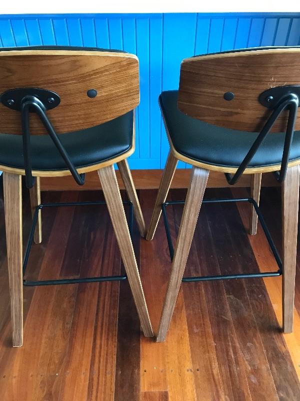 The frame and backrest feature a stark black steel accent that gives an edge to the otherwise traditional stool, consisting of a walnut veneer frame and a polyurethane leather seat. This stool is made of high-grade components so you can have quality craftsmanship, functionality and fashion all in one.